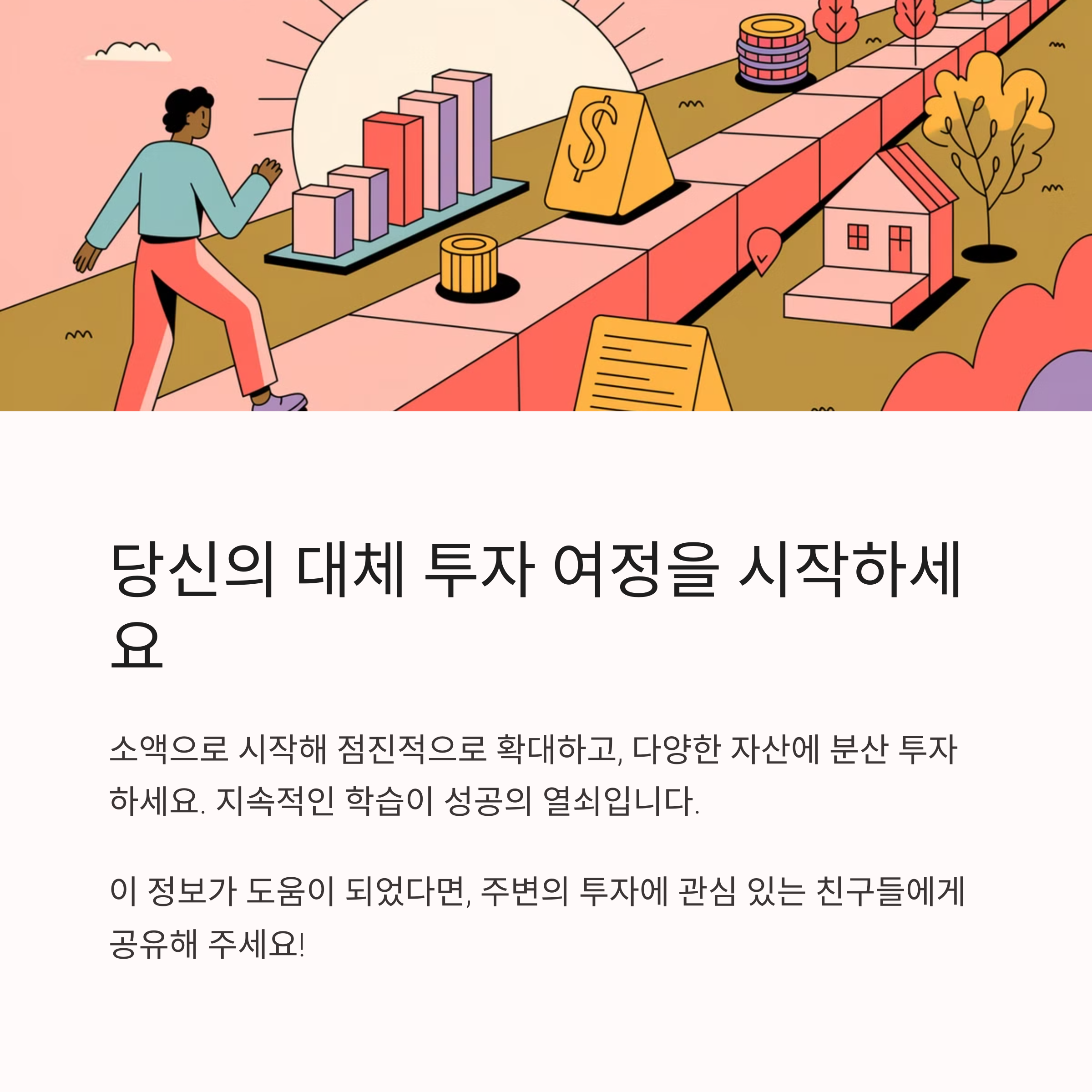 여러분은 어떤 대체 투자에 관심이 있으신가요? 댓글로 남겨주시면 더 자세한 정보를 공유해 드리겠습니다. 또한, 대체 투자에 대해 궁금한 점이 있다면 언제든지 질문해 주세요!