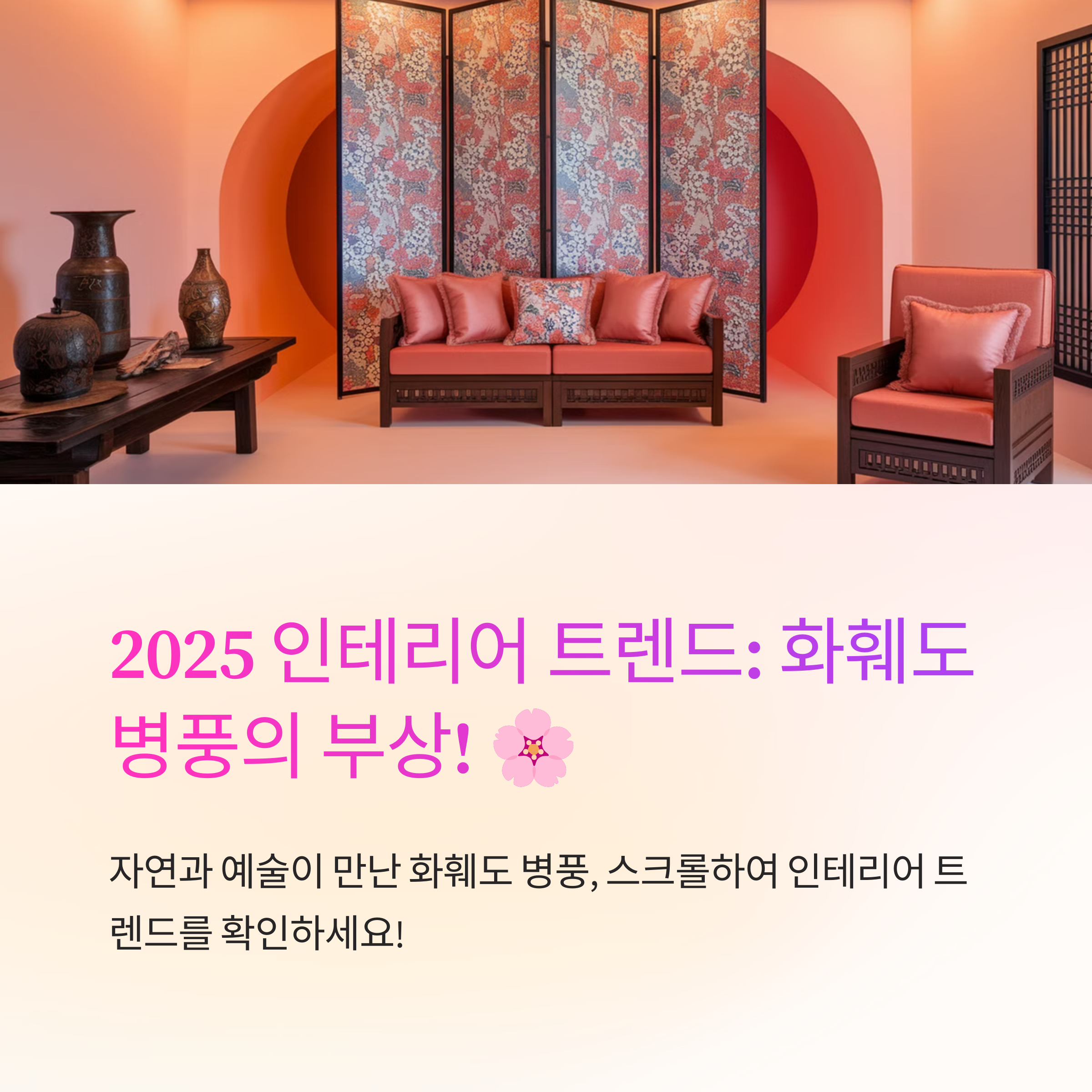 2025년 인테리어 트렌드에서 화훼도 병풍이 주목받는 이유는 단순한 미적 요소를 넘어서 자연 친화적인 공간을 제공하기 때문입니다. 현대 사회에서는 실내에서도 자연을 느낄 수 있는 **바이오필릭 디자인(Biophilic Design)**이 큰 인기를 끌고 있으며, 화훼도 병풍은 이러한 흐름과 완벽하게 부합합니다. 특히 한국 전통의 병풍과 결합한 화훼 아트는 고급스러운 분위기와 자연스러운 힐링 효과를 동시에 제공합니다.