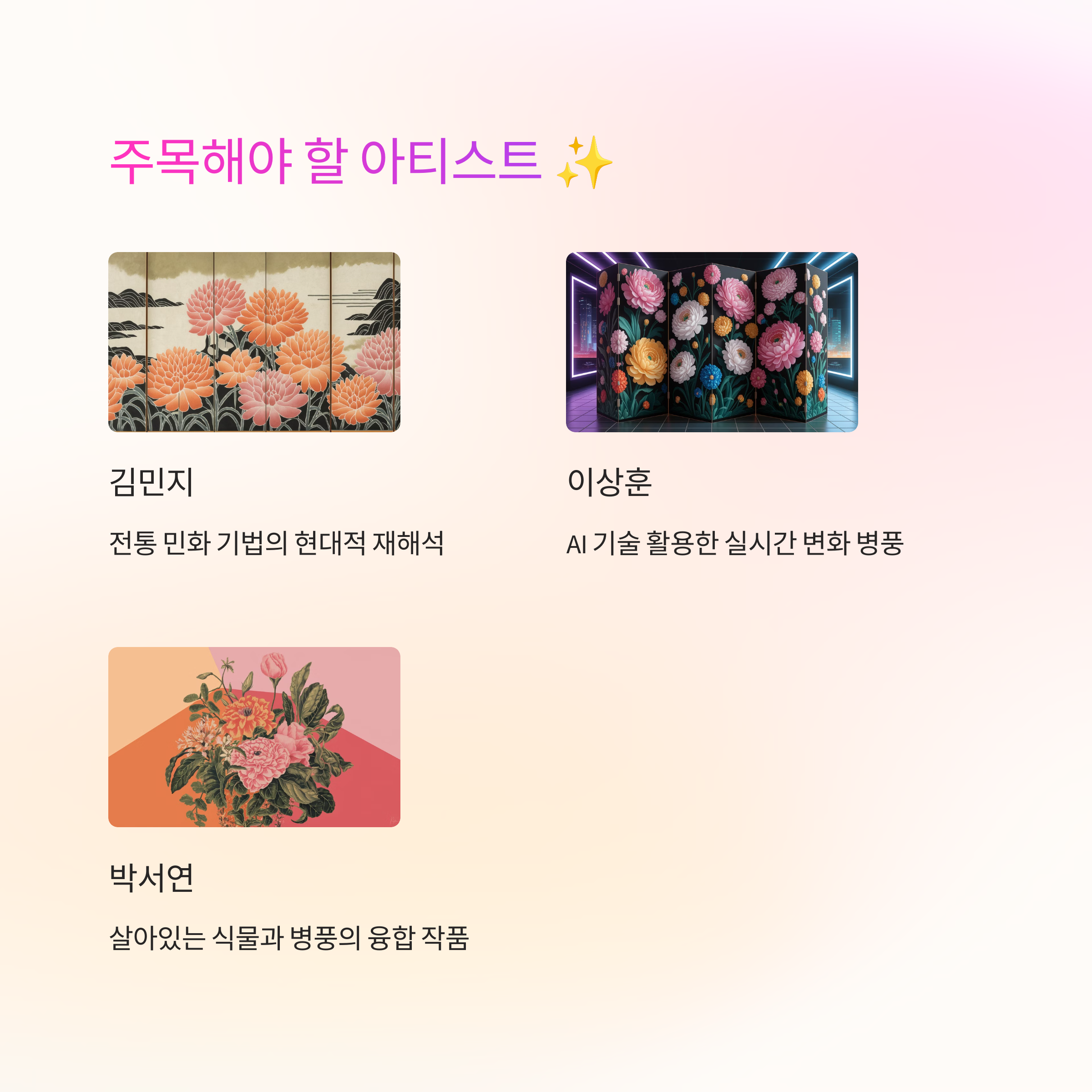 최근 인테리어 시장에서 ‘화훼도 병풍’이 새로운 트렌드로 떠오르고 있습니다. 단순한 장식품이 아닌, 공간을 감각적으로 변화시키는 요소로 각광받고 있는데요. 특히 2025년에는 친환경 라이프스타일과 한국 전통미가 결합된 디자인이 더욱 주목받을 전망입니다. 기존의 화훼 인테리어가 화분, 벽걸이 화분 등에 집중되었다면, 이제는 전통 병풍과 접목된 화훼 아트가 주목받고 있습니다. 이런 변화는 단순한 유행이 아니라, 전통과 현대의 조화라는 디자인 트렌드의 흐름과 맞물려 있습니다. 그렇다면, 화훼도 병풍이 인기를 끄는 이유는 무엇일까요? 그리고 2025년에는 어떤 디자인과 스타일이 주목받을까요? 지금부터 하나씩 살펴보겠습니다.