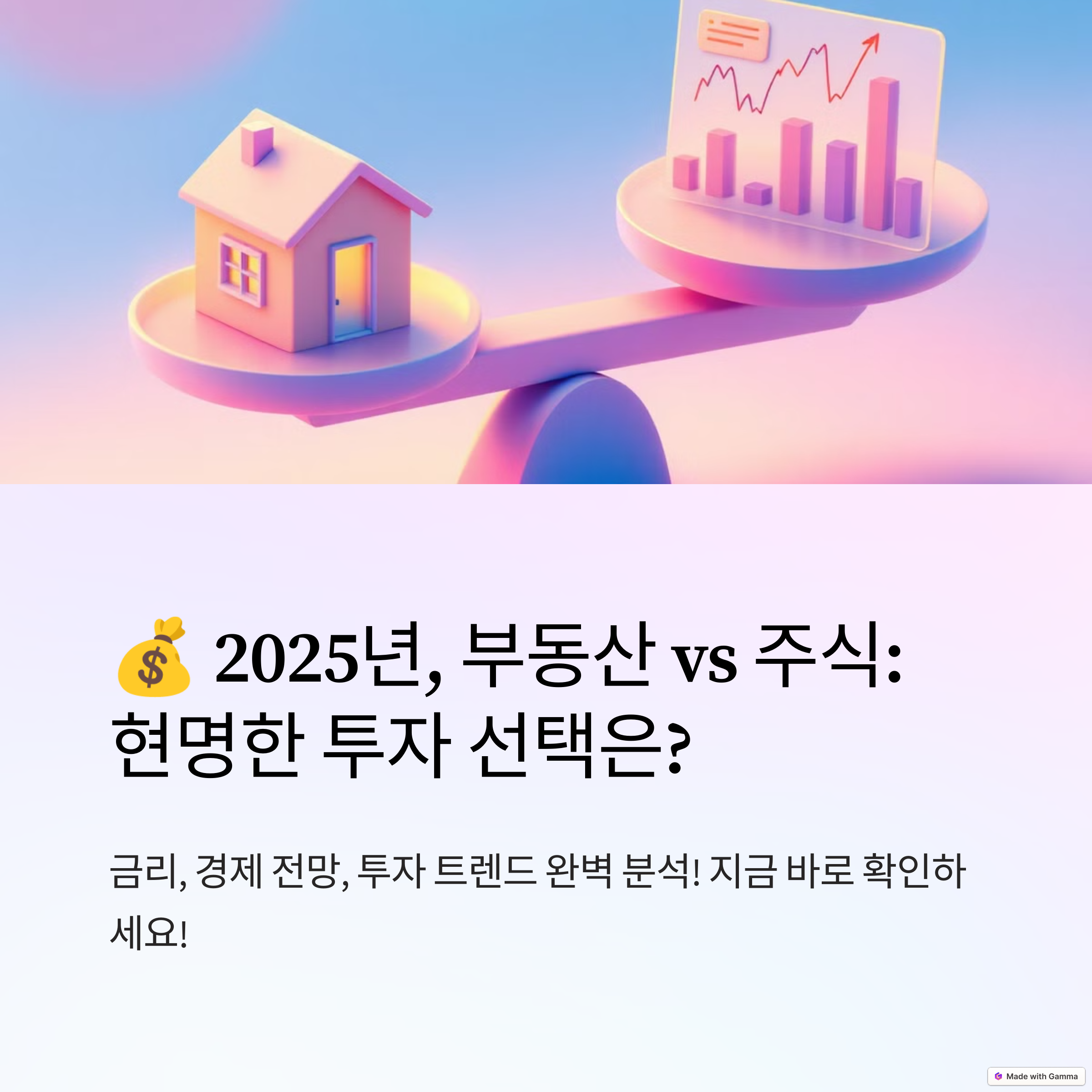여러분은 2025년에 부동산과 주식 중 어디에 투자하는 것이 더 유리하다고 생각하시나요? 의견을 댓글로 남겨주세요!