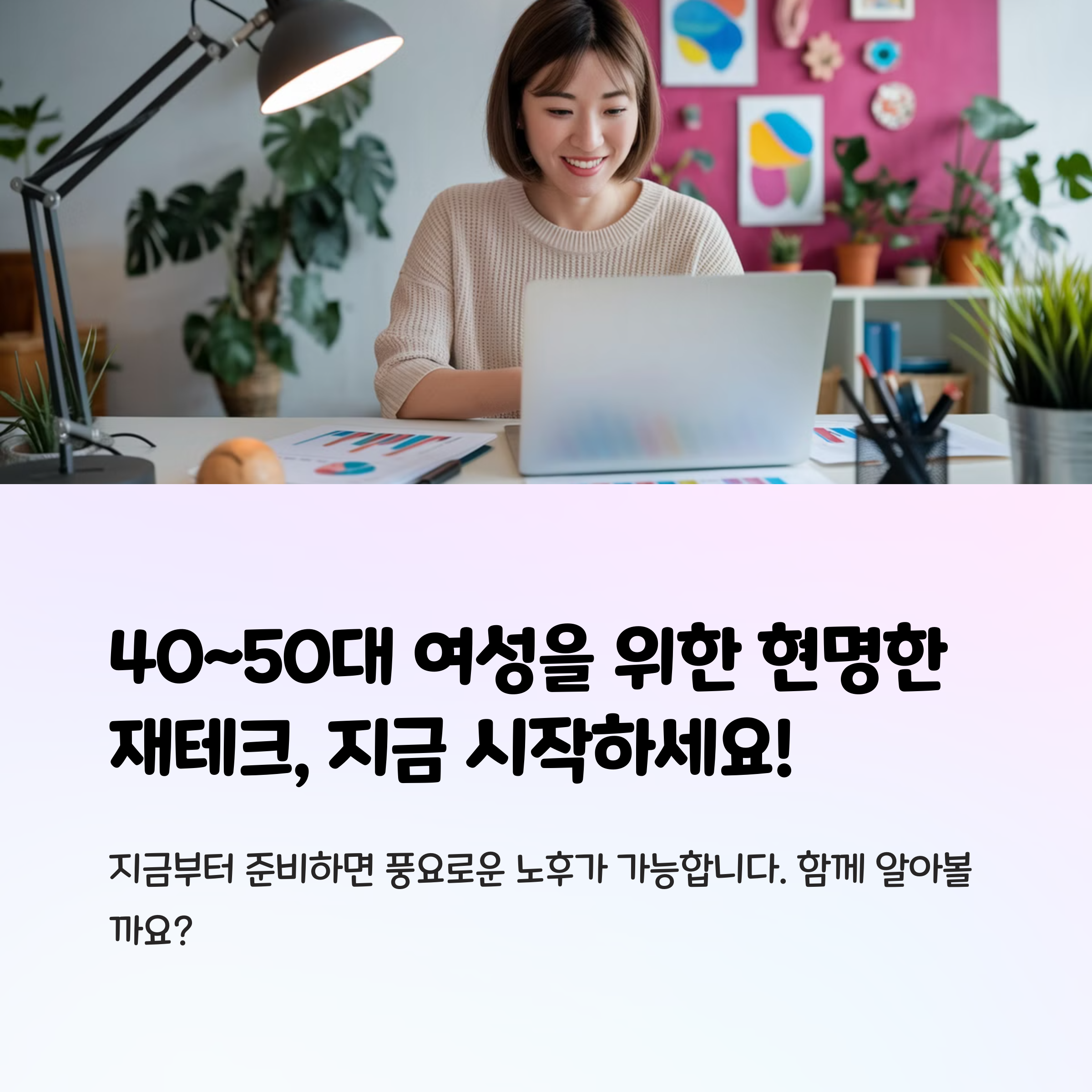지금부터라도 재테크를 시작하는 것이 중요합니다. 작은 변화가 큰 차이를 만들 수 있으며, 꾸준한 실천이 안정적인 재정을 만듭니다. 40~50대 여성분들에게 적합한 재테크 방법을 소개해드렸는데요, 가장 중요한 것은 본인에게 맞는 방법을 찾아 꾸준히 실천하는 것입니다. 혹시 궁금한 점이 있거나 더 알고 싶은 내용이 있다면 댓글로 남겨주세요! 함께 성장하는 재테크 라이프를 응원합니다. 😊